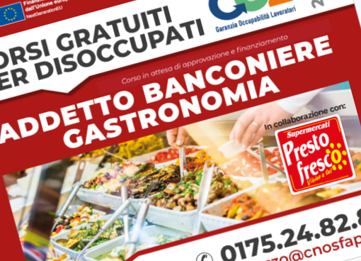 Se sei un adulto disoccupato (maggiorenne) in cerca di una nuova opportunità lavorativa, questo è il momento giusto per rimetterti in gioco. Il nostro corso gratuito di qualifica per Banconiere di Gastronomia, finanziato dalla Regione Piemonte, dall’Unione Europea e dal Bando GOL (Garanzia di Occupabilità dei Lavoratori), è pensato appositamente per aiutarti a costruire un nuovo percorso professionale in un settore con molta richiesta di inserimento lavorativo.