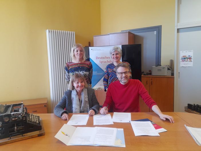 Già nel dicembre 2024 era pervenuta l’autorizzazione e il 28 marzo scorso il dirigente scolastico ha sottoscritto la dichiarazione congiunta di intenti tra le parti alla presenza di Gabriele Volgnandt, consulente per il tedesco come lingua straniera in Italia, referente dell’Ufficio centrale per le scuole tedesche all'estero in Italia (ZfA-Zentralstelle für das Auslandsschulwesen).