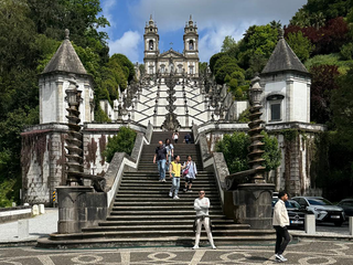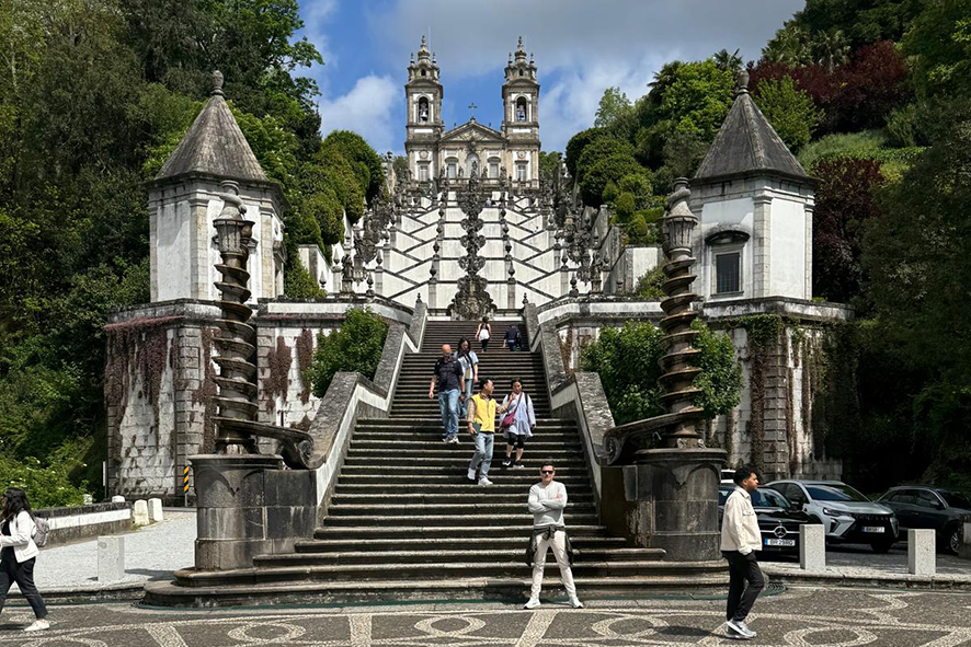 Abbiamo attraversato le valli del Douro, famose per i vigneti che scendono a picco sul fiume. Il paesaggio sembrava uscito da un quadro! Abbiamo dormito in una struttura in cima a una collina: al risveglio, ci siamo affacciati e davanti a noi c’erano solo viti, luce dorata e silenzio. Abbiamo fatto una degustazione di vini: bianchi e rossi davvero sorprendenti. Non immaginavo una tale qualità e varietà. L’immagine più ipnotica del viaggio è stata proprio lì vicino: un belvedere, solo io e Claudia, con una vista incredibile e un panorama da cartolina, dove il tempo è sembrato quasi fermarsi. Poi Braga, la terza città del Paese, dove la visita al celebre santuario, salendo 600 gradini a piedi, ci ha messi a dura prova. Un’esperienza… quasi “penitente”, ma magnifica. Arrivare in cima ci ha ripagati con gli interessi. La spiritualità, la fatica, il vento fresco sul viso: ogni sensazione ha reso speciale quel momento.