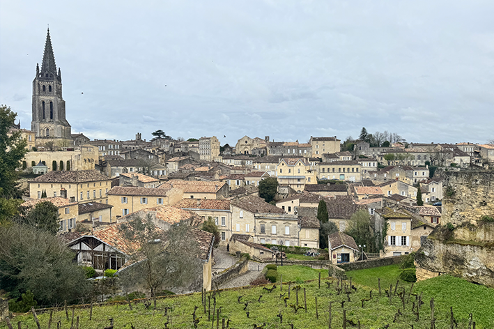 A Saint-Émilion, che si trova a meno di un'ora da Bordeaux ed è facilmente raggiungibile anche con i mezzi pubblici, grazie a una stazione ferroviaria poco distante. È un borgo incantevole medievale, arroccato su una collina, con un centro storico raccolto e curato, fatto di stradine in salita, chiese antiche e scorci suggestivi. Dalla parte alta, vicino alla chiesa, si apre la vista sui vigneti che circondano il paese. Ci sono stata a marzo, quando le viti erano state appena potate: il paesaggio aveva un'eleganza sobria, disegnato da linee ordinate che seguivano dolcemente il profilo delle colline. Immagino però che a fine estate, con i filari maturi e i colori caldi della stagione, sia decisamente più spettacolare.