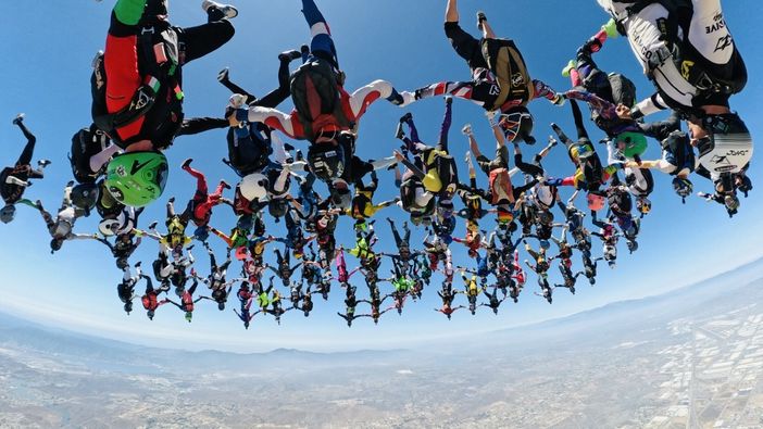 L’head down è una disciplina estrema in cui i paracadutisti volano a testa in giù, raggiungendo velocità superiori ai 300 km/h. Ogni movimento richiede massima precisione, controllo e coordinazione. Per costruire la formazione, gli atleti si sono lanciati contemporaneamente da cinque aerei diversi, unendosi per aria in modo sincronizzato. Una tecnica con un altissimo livello di difficoltà e che richiede particolare. Il precedente record californiano risale 2017 e aveva visto 80 partecipanti buttarsi e unirsi a testa in giù a migliaia di metri di quota.