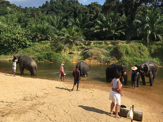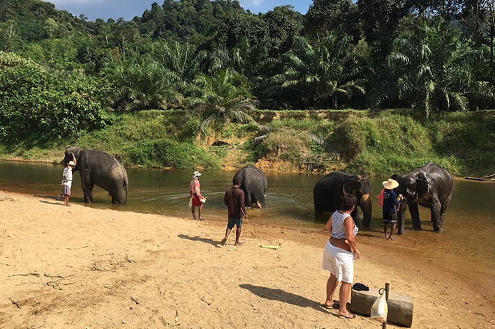 Ma è per un altro incontro che sono venuto fin qui. Gli elefanti della Thailandia, sfruttati per anni dal turismo, stanno lentamente recuperando spazi di libertà. Qui esistono piccoli santuari etici, nati grazie alle comunità locali. Non tutti lo sono davvero; la scelta richiede attenzione. Nel centro che visito, gli elefanti vivono senza catene né basti. Si muovono liberi in un tratto di foresta semi-protetta che segue il corso di un torrente. Non ci sono spettacoli, non si sale in groppa. Il momento con loro è un invito alla scoperta. All’inizio li osservo da lontano. I gesti sono misurati. Una giovane femmina ci guarda curiosa, con le grandi orecchie in movimento. Impariamo a preparare il loro cibo, a raccogliere foglie e frutta, a rispettarne le distanze. Il momento più intenso arriva, quando gli elefanti scelgono spontaneamente di immergersi. Non ci sono comandi né istruzioni. Si sta lì, in silenzio, accanto a loro. Il più anziano del gruppo — enormi zanne e pelle segnata — scivola piano nell’acqua. La sua lentezza è ipnotica. Intorno a me, nessuno scatta selfie. Gli sguardi sono bassi, rispettosi. Ho la sensazione che, in quel momento, anche noi stiamo imparando qualcosa: a pesare i gesti, a muoverci con discrezione in un mondo che non ci appartiene.