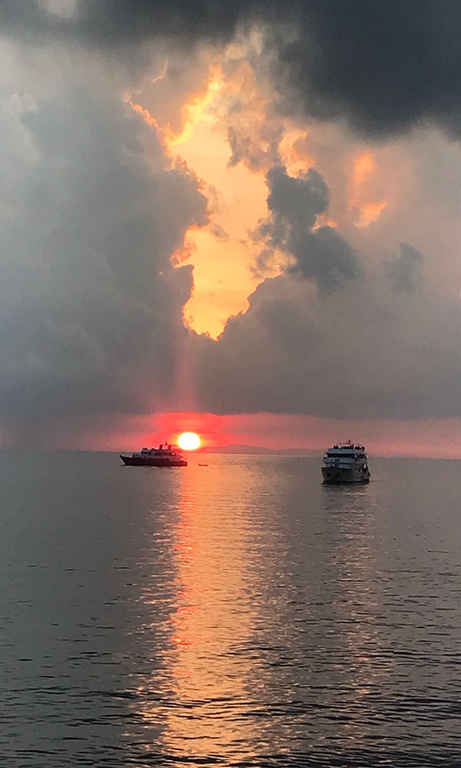 Ma la vera vita, alle Surin, scorre sull’acqua. Ogni mattina, piccole longtail boat — barche tradizionali dal lungo timone — partono dal campo con piccoli gruppi di viaggiatori. Il ritmo segue i reef: ci si sposta da un sito all’altro, dal blu profondo di Richelieu Rock alle barriere più protette intorno a Koh Surin Nua e Koh Surin Tai. A bordo il tempo si distende. Le giornate seguono una ritualità fatta di onde e silenzio. Si nuota da una lingua di corallo all’altra, ci si immerge in acque che sembrano lastre di vetro. Il mondo marino pulsa: banchi di pesci damigella, pesci pappagallo, murene rintanate nelle fessure della roccia. Qualcuno avvista uno squalo pinna nera. Le tartarughe, regine di questo mare, scivolano leggere. La barca diventa casa. Ci si sdraia all’ombra di un telo, si sorseggia acqua di cocco, si ascoltano i racconti delle guide locali, spesso ex pescatori oggi custodi del parco. Il legame con il mare è profondo e si legge nei gesti essenziali: lanciare l’ancora, leggere il cielo, seguire le maree. Al rientro, il tramonto segna la fine di un giorno governato dalle correnti. Seduto fuori dalla tenda, osservo il cielo popolarsi di stelle. Non le ricordavo così fitte. Il respiro del mare accompagna il sonno, mentre piccoli granchi si muovono sulla sabbia umida.