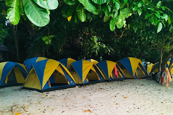 Non ci sono hotel. Non ci sono bar. Chi arriva può scegliere tra pochi bungalow semplici, essenziali, oppure sistemarsi in un campo tendato predisposto direttamente sulla spiaggia, con tende già montate a pochi metri dal mare. Non c’è acqua corrente: per lavarsi e per cucinare si utilizzano vasche di raccolta dell’acqua piovana, gestite con molta parsimonia. La vita qui è spartana per scelta. È vietato introdurre e consumare alcolici: una regola che protegge l’equilibrio di queste isole e ne rafforza il carattere controcorrente.
