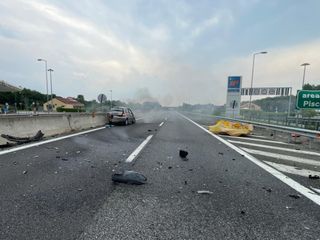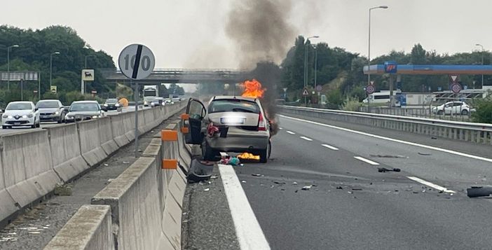 Auto prende fuoco sulla Torino-Pinerolo, un ferito