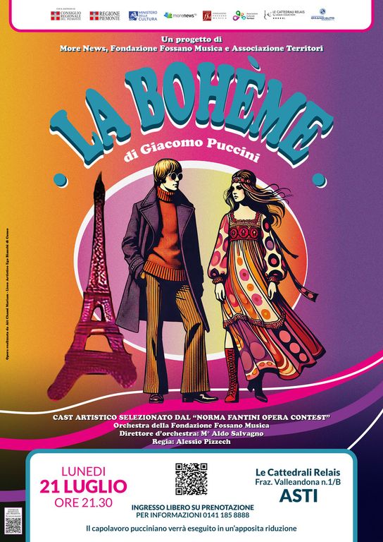 Il direttore di Fondazione Fossano Musica, Gianpiero Brignone, spiega che “la rappresentazione di La Bohème in forma semi scenica presso il Relais Le Cattedrali di Asti nasce dal desiderio di unire due patrimoni di straordinaria bellezza: quello musicale, incarnato dall’opera di Puccini, e quello culturale e paesaggistico del territorio astigiano. L’arte lirica, con la sua potenza espressiva e la sua capacità di raccontare l’amore, la fragilità e la speranza umana, trova nel contesto suggestivo del relais un luogo ideale per risuonare e coinvolgere. La Bohème non è solo un capolavoro del repertorio operistico, ma un invito a riconoscere la bellezza come valore fondante della nostra identità. In questo senso, l’incontro tra musica e paesaggio si fa esperienza viva, emozione condivisa, cultura che si rinnova nello sguardo di chi ascolta.”