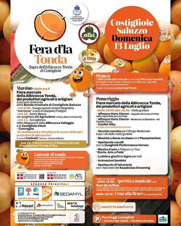 Si chiama “Fantasie di Tonda” il primo concorso amatoriale di dolci a base di albicocca Tonda di Costigliole Saluzzo, frutto simbolo del territorio cuneese. L’iniziativa è aperta a tutti – residenti e non – e si svolgerà domenica 13 luglio all’interno del Salone d’Onore del Palazzo Comunale, in occasione della “Fera d’la Tonda”.