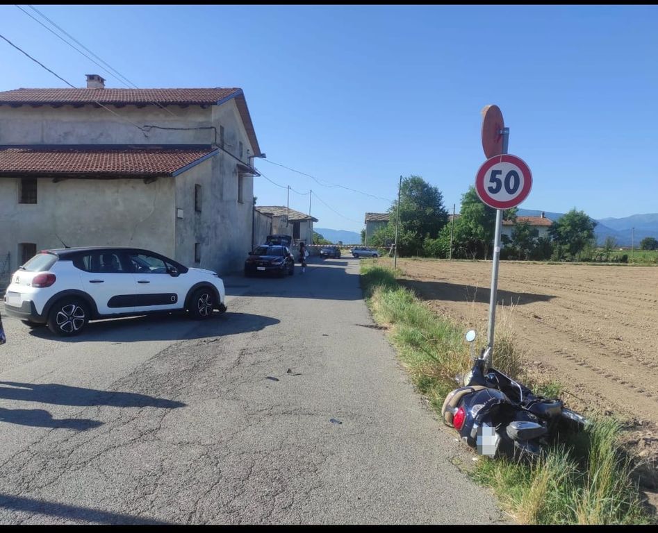 Scontro tra auto e scooter a Cavour in via Gemerello