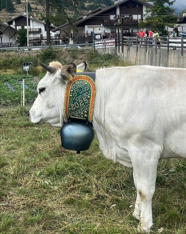La vincitrice della terza edizione di ‘Miss Manza’ è Ice. Di razza piemontese, pascola nei prati dell’azienda agricola Grand Puy, nell’omonima frazione.