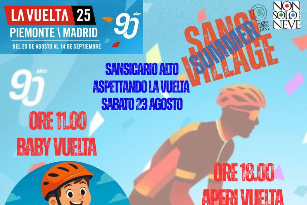 Aspettando “La Vuelta” sabato 23 agosto Sansicario Alto si organizza per salutare la corsa spagnola con una serie di eventi dalla “Mini Vuelta” al mattino dedicata ai più piccoli con Gimkane e Giochi per apprendere le prime tecniche della bicicletta e sul comportamento corretto anche sui sentieri montani. Seguirà nel pomeriggio “AperiVuelta” un aperitivo diffuso a tema tra tapas, sangria e cocktail anche analcolici nei locali di Sansicario Alto accompagnato da un deejay set che solca le musiche più classiche del repertorio chillout music, con influenze di ambient e lounge nato proprio per accompagnare i tramonti di alcuni famosi locali delle coste e isole spagnole .