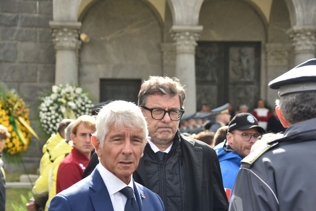 Presenti, tra gli altri, il ministro dell'Economia Giorgetti e quello dello Sport Abodi. Il grande dolore di parenti e amici