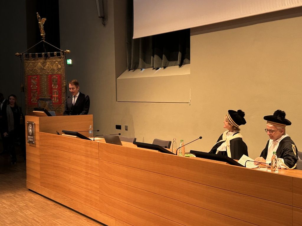 “Oggi sono in corso 50 conflitti, dall’Ucraina a Gaza, dove si spezzano vite e si interrompe la possibilità di costruire futuro. Gaza vive una violenza inaudita e la violazione dei diritti umani in quella che ormai è una guerra di sterminio: si usa il termine genocidio ed esprimiamo preoccupazione per la missione della Sumud Flotilla. Quel che accade interroga la nostra vocazione: non possiamo solo denunciare, ma passare ai fatti. Borse di studio, progetti di ricostruzione condivisa e sostegno alla realizzazione di corridoi umanitari. Ma pure spazi di confronto e conoscenza: se non lo si fa all’Università, quali altri luoghi rimangono? Non si può rimanere indifferenti”.