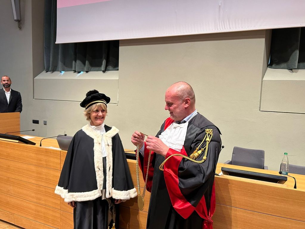 “Assumo questa carica con grande senso di responsabilità - sono le sue prime parole -: responsabilità verso questa comunità nella speranza di costruire un futuro migliore. Ma sento anche un eredità di inestimabile valore. Inizia un tempo nuovo: non mi sfugge il fatto di essere la prima donna a essere eletta rettrice, frutto di un cammino collettivo. Ma non è un punto di arrivo: è un punto di partenza lungo un cammino ancora lungo visto che solo la metà delle donne lavora e una su cinque è costretta a lasciare i lavoro dopo la maternità”.