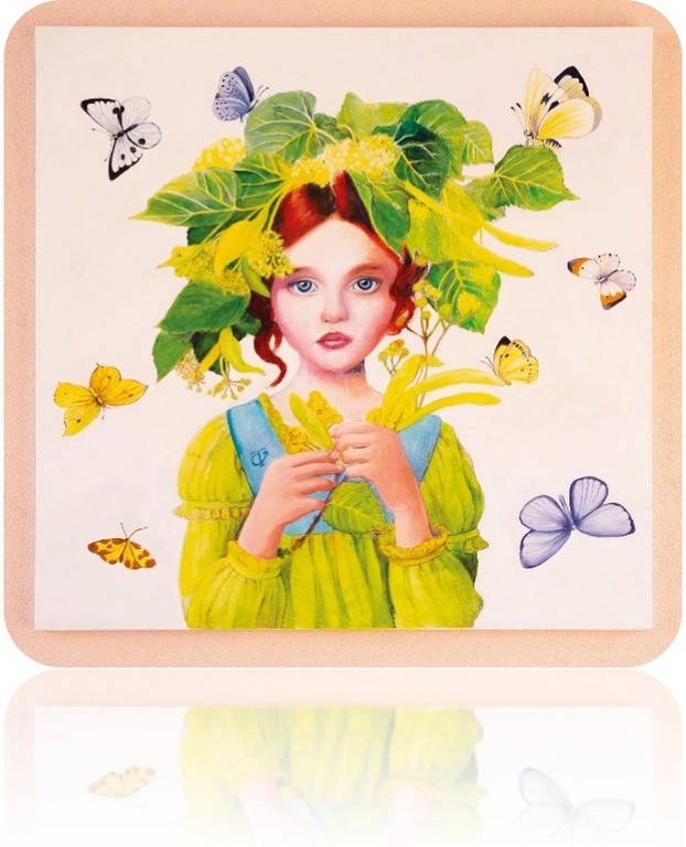 Garelli presenta invece un più tradizionale lavoro a parete, realizzato con l’uso del colore acrilico su tela. Il titolo, ‘Tillia’, corrisponde al nome della fanciulla raffigurata: il suo capo è ricoperto di foglie di tiglio e intorno a lei svolazzano colorate farfalle: “L’opera nasce per essere collocata in questo spazio, sotto l’androne, e l’artista voleva che la sua creazione dialogasse con il ramo che c’è sulla facciata del fabbricato, che è un lavoro di Luisa Valentini. Le farfalle, che circondano la fanciulla, richiamano tra l’altro perfettamente un altro nostro progetto”.
