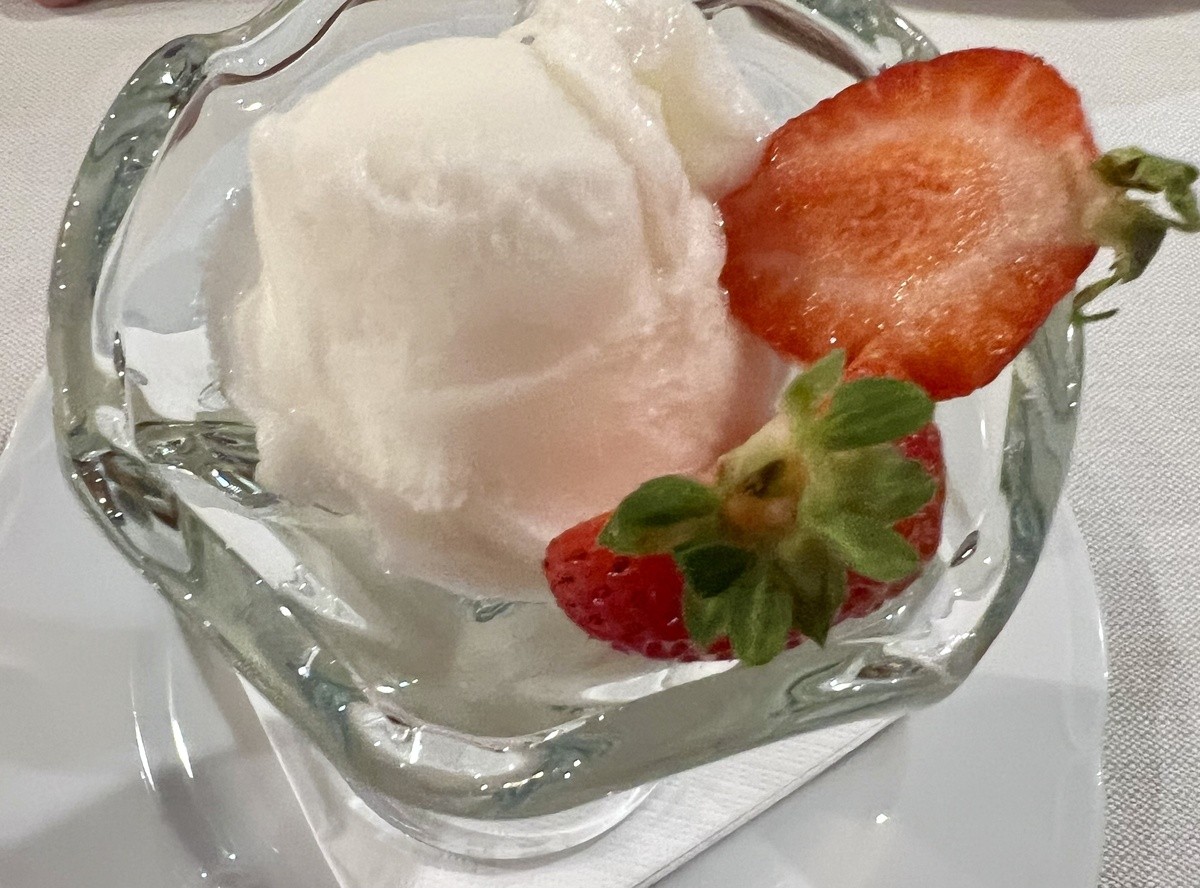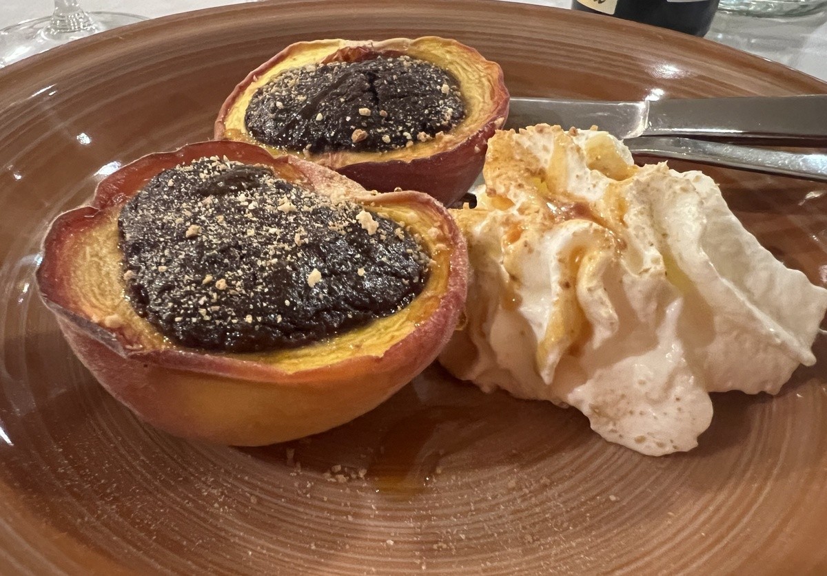 E, se il Sorbetto al limone risulta corretto, ben riuscite appaiono invece le Pesche ripiene, la cui elevata qualità avrebbe potuto serenamente fare a meno della panna con cui erano guarnite.