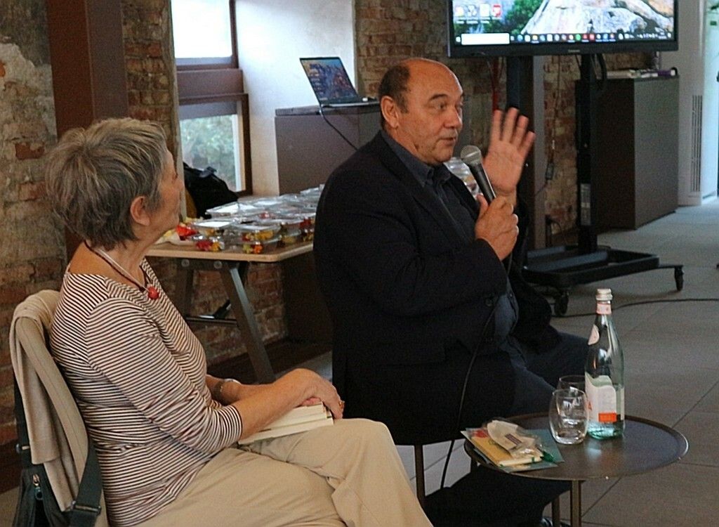 Sotto la Pergola bioclimatica, si è poi tenuto l’incontro con Claudio Porchia, giornalista ligure e ideatore del Festival nazionale della Cucina con i Fiori, affiancato da Mariagrazia Dammicco, presidente del Wigwam Club Venezia. I due hanno presentato il volume Ricette per ogni stagione di Libereso Guglielmi, recentemente pubblicato da Edizioni SemiRurali: un libro che racconta con semplicità e poesia la cucina naturale del “giardiniere di Calvino”, custode di un sapere botanico e gastronomico d’altri tempi.