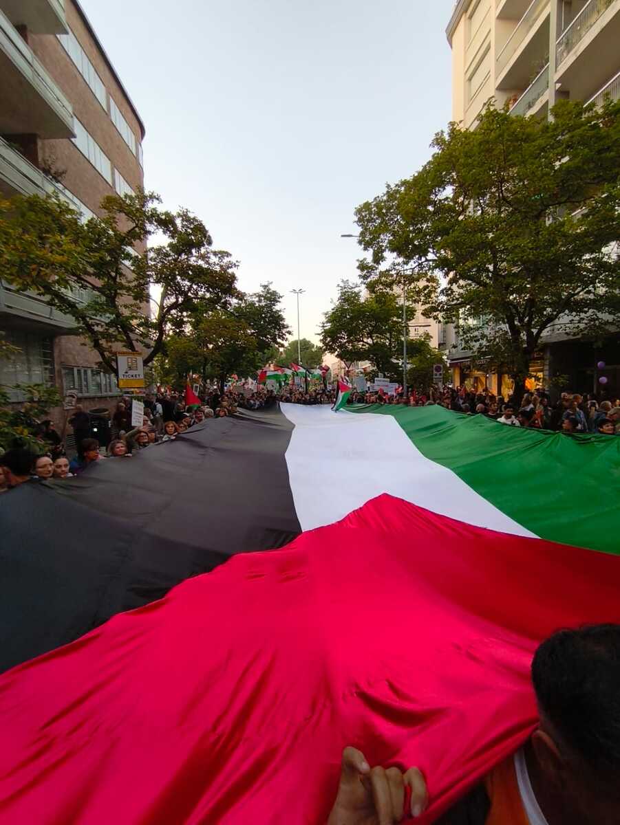 “A partecipare alla manifestazione sono diverse realtà: ciclofficine, parrocchie, conventi… - racconta Cossotto -, tutte realtà completamente diverse e che hanno in comune la solidarietà alla causa palestinese”. Il clima è tranquillo e pacifico: numerose bandiere, tanta calca e polizia presente a presidiare la piazza. In una città blindata per garantire la massima sicurezza a chi entrerà allo stadio, nazionale israeliana inclusa.
