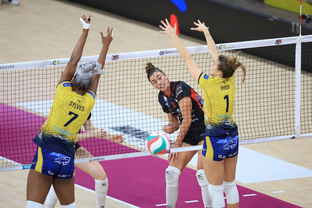 Il parziale inizia con Akrari titolare, dopo l’ingresso nel secondo set. Proprio la campionessa olimpica dà la scossa al servizio, piazzando anche un ace (1-5). Le Black Angels non tirano i remi in barca e pian piano ricuciono lo strappo, mettendo la freccia con Gardini e Markovic (11-9). Sempre Markovic regala il +3 (15-12). Malgrado una Malual ampiamente insufficiente, la Wash4green recupera terreno e arriva a un prezioso +2 (19-21). L’opposta si rifà parzialmente, piazzando il +3 (20-23). Ma le ragazze di coach Marchiaro si fanno clamorosamente risucchiare sul 23-23, chiudendo poi 23-25 con Davyskiba.