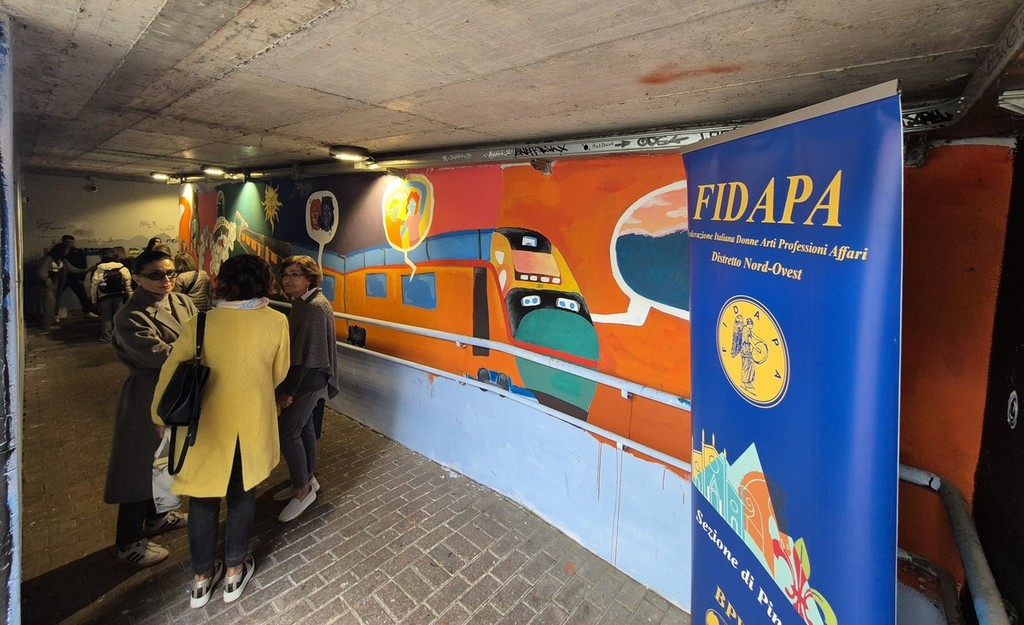 C’è la bandiera dalla Palestina, un abbraccio dei televisori sintonizzati e un San Bernardo che presta soccorso. Sono alcune delle immagini con cui una sessantina di ragazzi del Liceo Artistico del Buniva di Pinerolo hanno raccontato il rispetto e la fratellanza in diversi murales realizzati nel sottopasso della stazione olimpica, all’altezza del parcheggio con il fotovoltaico. Le loro opere sono state sostenute dalla Fidapa, che ha promosso un incontro, lo scorso anno scolastico, con la psicologa e psicoterapeuta Silvia Bonino, professoressa ordinaria di Psicologia dell’educazione dell’Università degli Studi di Torino, moderato dalla socia Ernestina Parente.
