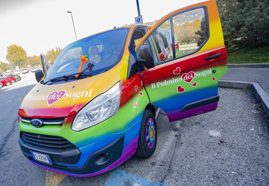 Oggi l’arcobaleno del ‘Pulmino dei sogni’ ha illuminato piazza Polonia, l'area che si trova davanti all'ospedale Regina Margherita di Torino. Da domani, invece, entrerà in servizio per accompagnare i bambini malati e le loro famiglie ad attività ludiche.