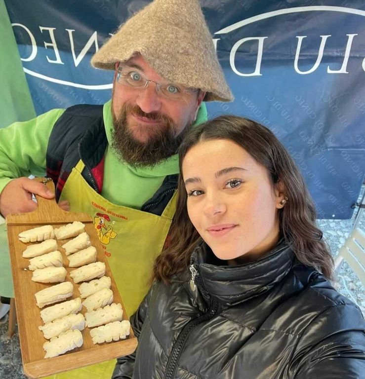 Sandro Gallina è descritto da chi lo conosce come un vero “tornado” di energia. La sua giornata tipo è un vortice di attività che uniscono scienza, arte e comunità. Inizia definendo con cura l’alimentazione dei suoi animali, privilegiando cibi naturali e sostenibili per garantire la qualità del latte: erbe fresche, fieni locali e un’alimentazione che rispetta il benessere degli animali, base imprescindibile per formaggi autentici e salutari. Da lì passa alla creazione vera e propria, un processo che lui eleva a forma d’arte: modella le forme di erborinati con mani esperte, curando ogni fase della stagionatura per ottenere quel equilibrio perfetto tra cremosità, piccantezza e note erbacee tipiche del Blu di Cuneo. E senza tregua, si dedica a un’altra grande passione: partecipare a mercati e mercatini nei borghi delle vallate piemontesi. Qui, Sandro non vende solo prodotti, ma storie, consigli e un pezzo di territorio, creando legami diretti con i consumatori e promuovendo un’economia locale virtuosa.