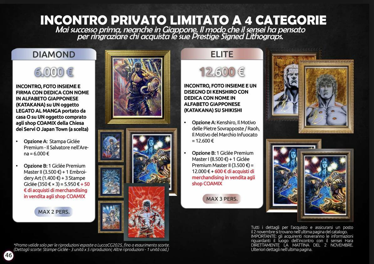 E fin qui, come dicono i giovani, ci sta. Ma la Coamix ha dato vita anche a un altro evento. Sarà concesso a pochi privilegiati di avere un incontro privato col Sensei. I privilegi, si sa, costano. Ecco il listino prezzi comunicato dalla stessa Coamix.