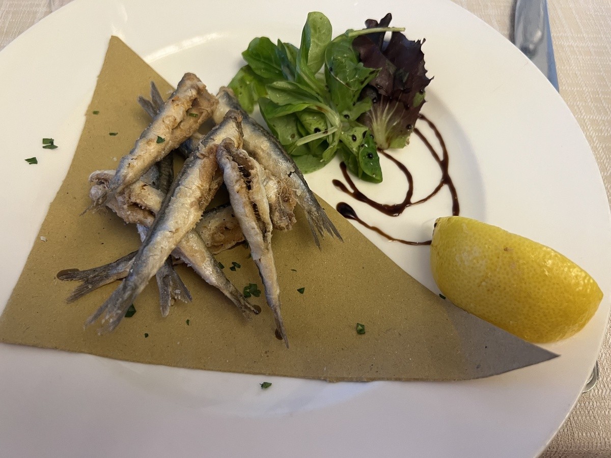 Fatte le mie scelte, i primi pesci che ho avuto modo di assaggiare sono stati delle Alici croccanti: panatura leggera, croccantezza corrispondente al nome, fragranza che mi avrebbe indotto a chiederne ancora.