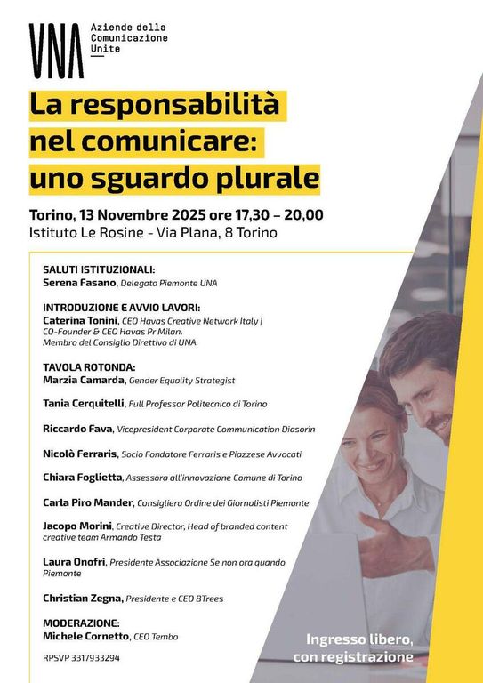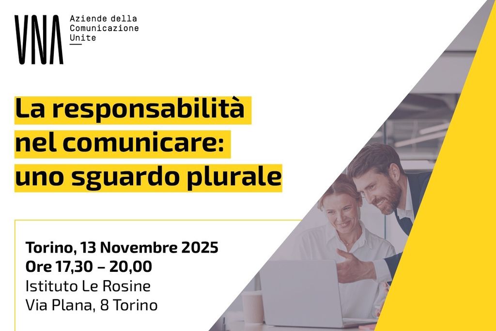 Il progetto prende avvio da Torino, il 13 novembre 2025 (ore 17.30 – 20.00) presso l’Istituto Le Rosine (Via Plana 8), e rappresenta il primo appuntamento di un percorso nazionale che metterà in dialogo professionisti della comunicazione, istituzioni, imprese e mondo accademico per confrontarsi su come si possa contribuire, in modo concreto, alla costruzione di un futuro più equo e sostenibile attraverso la responsabilità dei messaggi e dei contenuti.