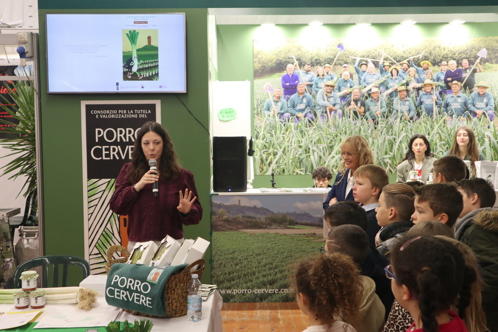 I 93 bambini della primaria Fratelli Vernassa, presenti ieri, hanno illustrato al pubblico quanto hanno appreso nell’ambito della seconda edizione del percorso didattico “Il Porro Cervere va a scuola”, promosso dal Consorzio con il sostegno dell’Assessorato all’Agricoltura della Regione Piemonte – Direzione Agricoltura e Cibo.