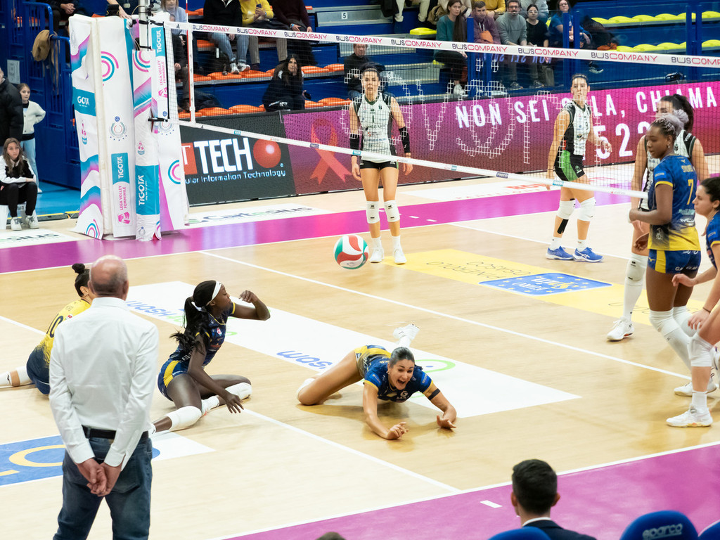 Ieri la squadra ha lottato contro una Megabox Ondulati Del Savio Vallefoglia fiaccata dalla sconfitta pesante in Challenge Cup con l’Aek Atene. Le marchigiane hanno mostrato una maggior compattezza e più frecce all’arco di coach Andrea Pistola, che rumors danno come allenatore della Monviso Volley nella prossima stagione. A imprimere la svolta decisiva, la ex Carletti che con due palle spinte ha coronato una rimonta inattesa nel tie-break, dal punteggio di 12-9.