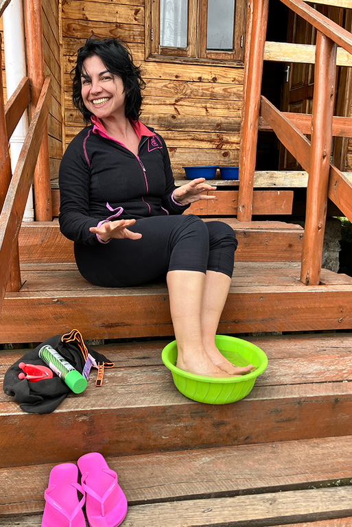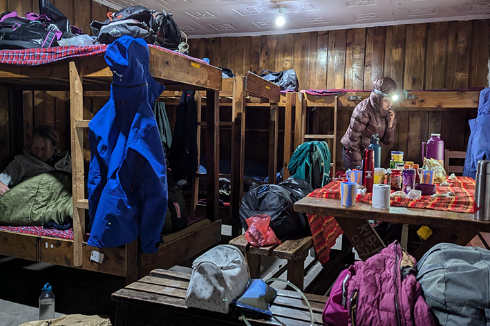 Eravamo sei donne, un gruppo nato per caso ma rivelatosi perfetto. Con noi c’erano guide, portatori, cuochi: una piccola comunità itinerante, ognuno indispensabile. Dormivamo in rifugi semplici: camerate, letti a castello, bagni spartani, una sala ristoro dove ogni gruppo si preparava la cena. Gli accompagnatori bollivano l’acqua, ci portavano una bacinella calda la sera e il mattino per lavarci viso e piedi. Piccoli gesti che, in quota, diventano un lusso.