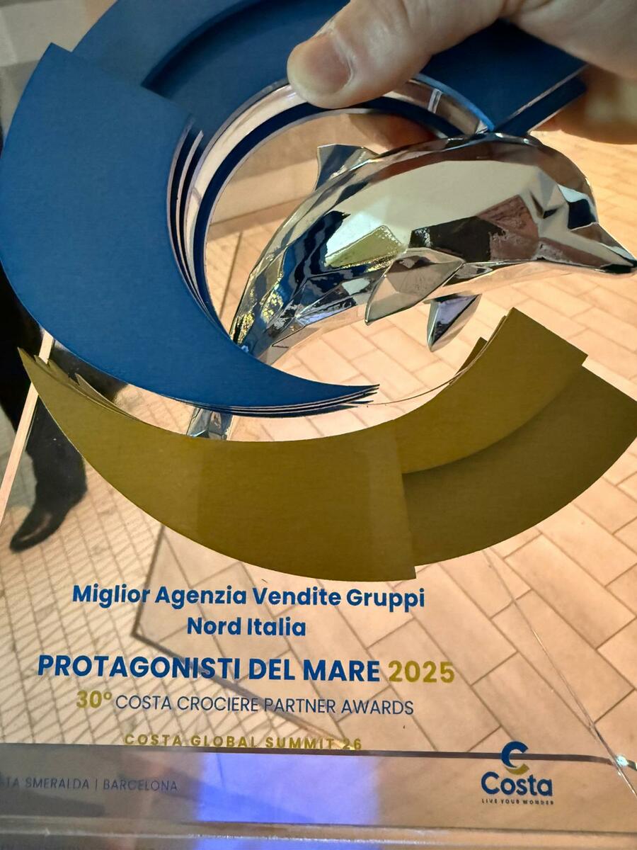 Dalla Costa Smeralda, l’agenzia Polaris Viaggi & Crociere di Bagnolo Piemonte è tornata a casa con una grande soddisfazione. Durante l’evento che ha celebrato i protagonisti del mare 2025, l’agenzia ha ricevuto da Costa Crociere due riconoscimenti importanti: il Delfino, simbolo dell’impegno e della dedizione verso i clienti, e soprattutto il premio come Miglior Agenzia Gruppi Nord Italia.