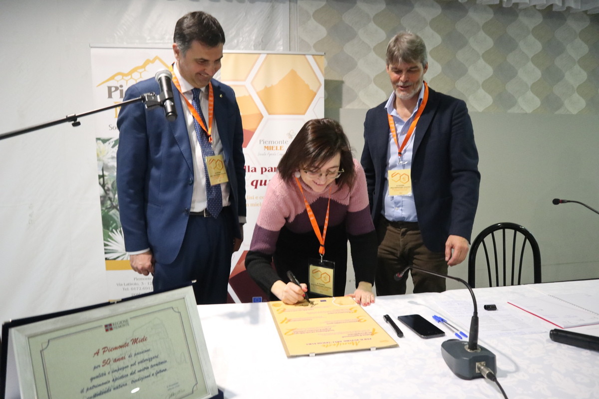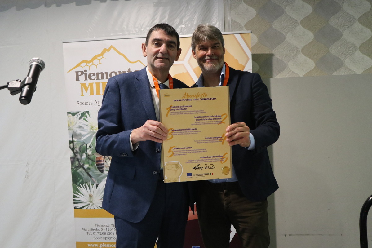 Regione e Provincia, in particolare, hanno sottoscritto l’importante “Manifesto del futuro dell’Apicoltura” di Piemonte Miele, un’iniziativa nata per coinvolgere apicoltori, agricoltori, aziende, istituzioni, scuole e cittadini in un’azione collettiva per la tutela degli impollinatori e dell’ambiente. Piemonte Miele ha inoltre ricevuto, sempre dalla Regione Piemonte, un attestato di merito per il raggiunto traguardo dei 50 anni per “passione, qualità e impegno nel valorizzare il patrimonio apistico del territorio, custodendo natura, tradizione e futuro”.