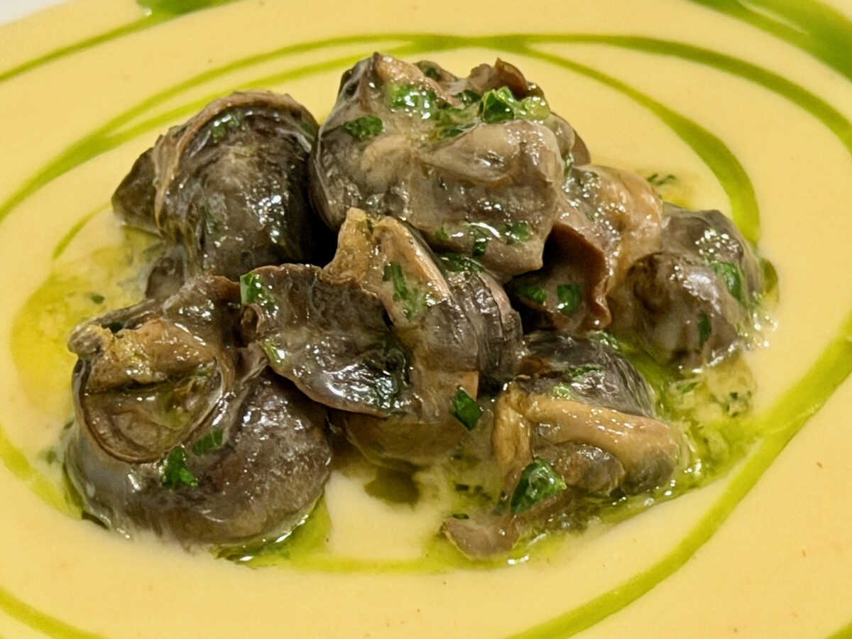 le Lumache alla parigina con crema Parmentier. Del primo, piatto ho apprezzato soprattutto la croccantezza della battuta di carne e la giusta cremosità dell’insalata russa, mentre il secondo mi ha lasciato più perplesso sia per l’assenza di mordente delle lumache, sia per l’abbinamento con una salsa nella quale quello che dovrebbe essere il sapore primario del piatto rischiava di restare davvero troppo sullo sfondo.