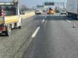 Una vettura ha travolto il mezzo del cantiere mobile. Nessun è rimasto ferito, ma si registrano lunghe code e traffico in tilt.