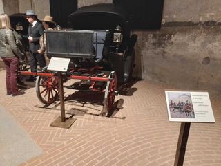 Accanto alle carrozze, la mostra presenta una selezione significativa di automobili delle origini provenienti dalla preziosa collezione del MAUTO: la Benz Victoria del 1893 progettata da Karl Benz, considerato con Gottlieb Daimler il padre dell’automobile; la Decauville 3½ HP, vincitrice della Parigi-Amsterdam-Parigi del 1898; la Hurtu 3 HP del 1898; la De Dion-Bouton 1¾ HP del 1899, versione a quattro ruote prodotta dai vincitori della prima corsa automobilistica al mondo, la Parigi-Rouen. Clément-Panhard VCP 3 HP del 1899.