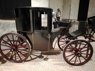 Tra le carrozze in mostra figurano la Landau Ronde (detta comunemente in Italia Landò), realizzata da Locati nel 1880; la Milord della Carrozzeria Orsaniga Enrico di Milano del 1860 e la Clarence, appartenente alla categoria dei Brougham o Brumm, dei Fratelli Macchi di Varese del 1870. La Phaeton, carrozza leggera ed agile, deve il suo nome al mito di Fetonte, il giovane figlio di Apollo che sfidò il cielo sul carro del sole: con le sue quattro ruote imponenti e il corpo snello, era pensata per una guida veloce ed elegante.