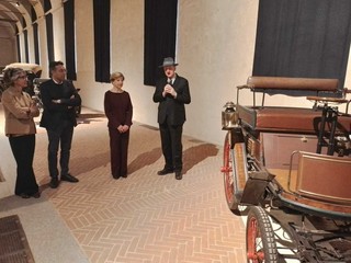 Il racconto si intreccia poi con la figura di Margherita di Savoia, che durante la sua permanenza a Stupinigi visse in prima persona questa fase di transizione. Attenta alle innovazioni e alle nuove tecnologie, la Regina utilizzò sia le carrozze tradizionali sia le prime automobili, diventando testimone e protagonista dei modelli di mobilità tra la fine dell’Ottocento e l’inizio del Novecento. Lei stessa aveva la patente di guida e possedeva una scuderia di tredici automobili, ciascuna identificata da un nome di uccello: Palombella, Falco, Falchetto, Sparviero, Aquila, Alcione, Condor, Allodola, Stornello.