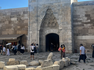 Qui c’è un punto dove la strada sembra non portare da nessuna parte e invece sta già raccontando tutto. È lì che compare una costruzione compatta di pietra chiara: Sultan Hanı. Dall’esterno è una fortezza. Muri alti, superfici imponenti, un portone scolpito con geometrie così precise da sembrare merletti. Nessuna concessione all’eleganza: qui la forma è funzione. Nel XIII secolo era un dispositivo logistico lungo la Via della Seta. Merci, animali, uomini, lingue diverse convivevano dentro lo stesso perimetro protetto. I caravanserragli erano infrastrutture prima che simboli: garantivano sicurezza, ristoro, scambio e momenti di fede . All’interno, il cortile centrale organizzava lo spazio con razionalità. Attorno, ambienti ospitavano magazzini e cucine. Qui si contrattava, si dormiva, si pregava. Il caravanserraglio non era un luogo sacro: era una macchina economica calibrata con precisione. Eppure oggi, svuotato del traffico e del commercio, conserva un’energia trattenuta, come se le pareti ricordassero ancora il rumore degli zoccoli sulla pietra e il tintinnio delle monete. Qui l’Anatolia si rivela per ciò che è stata: una terra che ha funzionato prima di affascinare, un territorio attraversato più che contemplato.