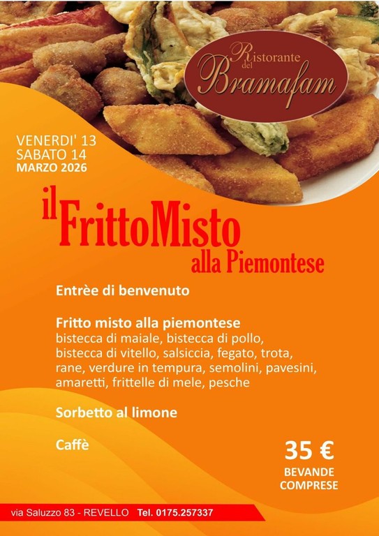 Nel cuore delle valli piemontesi, a Revello, il Ristorante del Bramafam si prepara a celebrare uno dei piatti più amati e rappresentativi della cucina regionale: il Fritto Misto alla Piemontese. Per due serate imperdibili, venerdì 13 e sabato 14 marzo 2026, il locale di via Saluzzo 83 invita tutti gli amanti del fritto croccante e saporito ad una vera e propria festa del gusto.