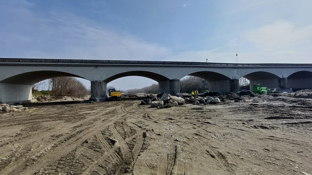 I lavori nella parte bassa hanno visto anche una sistemazione delle pile in alveo, con la posa di massi a cava, che le proteggono. Mentre la loro struttura in calcestruzzo, assieme a quella delle arcate, è stata protetta con uno speciale intonaco armato con reti in fibra di vetro. Ora toccherà all’impalcato: per impermeabilizzare, consolidare e allargare la sede stradale, con la posa di nuove barriere di sicurezza.
