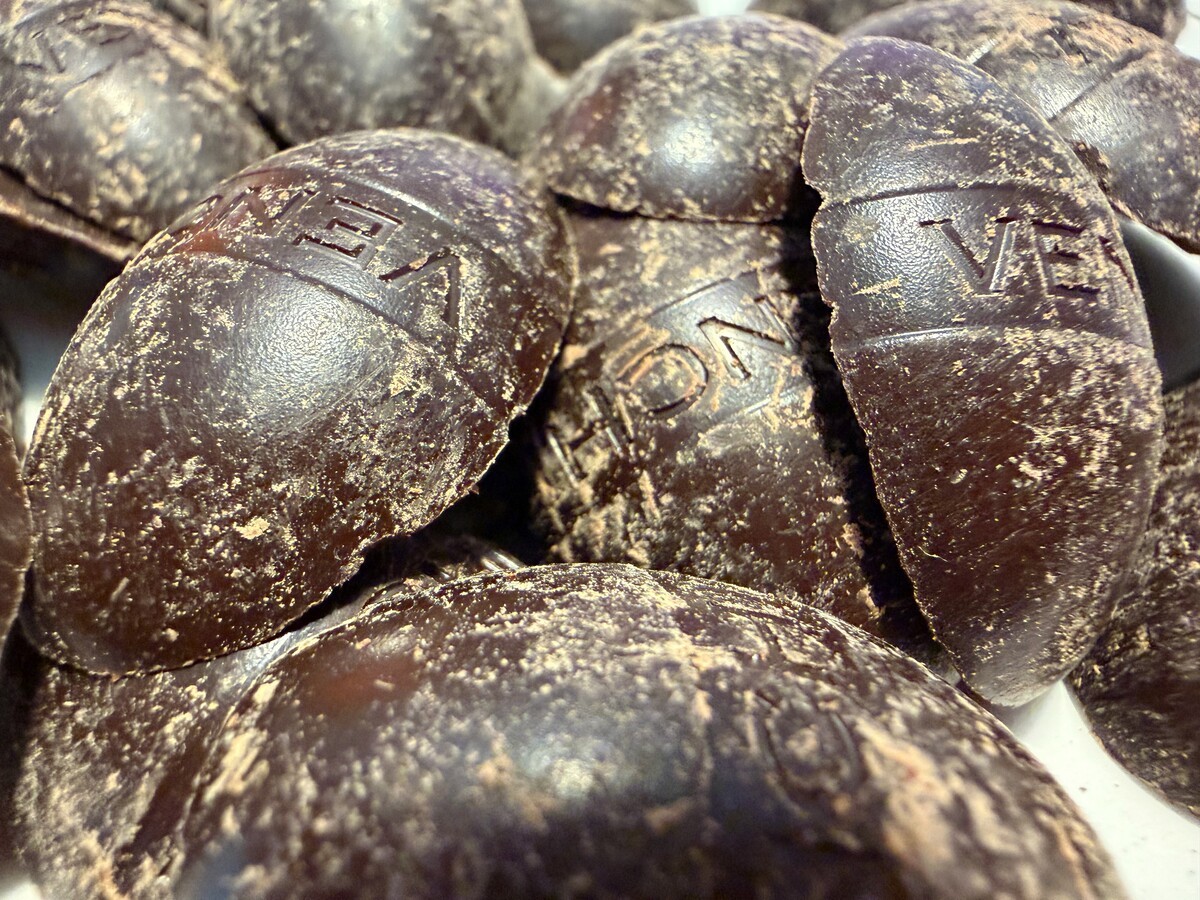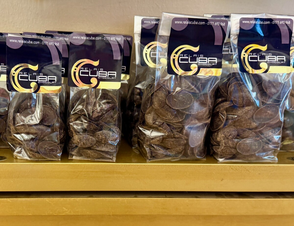 Capire che cosa siano davvero significa spostare lo sguardo. Non sono un prodotto finito nel senso consueto, ma una base: il cioccolato di prima lavorazione, la cosiddetta “copertura”. È ciò che normalmente i laboratori usano per creare altro — praline, mousse, tavolette— ed è proprio qui che cambia la prospettiva: al Relais Cuba Chocolat questa materia iniziale diventa il punto d’arrivo. Viene proposta colata, modellata, lasciata nella sua forma più semplice, senza ulteriori passaggi. Non viene incartata, non viene trasformata in qualcosa di più “riconoscibile”. Rimane com’è, con il suo equilibrio essenziale tra massa di cacao e zucchero. È un cioccolato che non costruisce narrazioni, ma le precede tutte: un inizio, più che un esito.