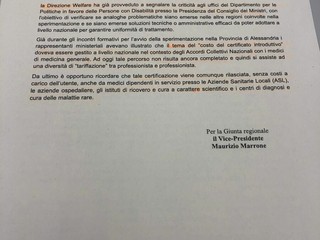 Nella risposta al mio question time odierno l’assessore Marrone ha dichiarato che il certificato può essere rilasciato, senza costi a carico dell’utente, anche dai medici delle ASL, degli ospedali, dell’IRCCS e dei centri di diagnosi e cura delle malattie rare.