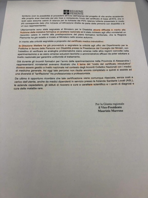 Auspichiamo che l’atteso decreto correttivo del Dlgs 62/2024 intervenga velocemente per ovviare a queste storture e consentire il rilascio del certificato medico introduttivo con tempi e costi più uniformi ed accessibili per l’utenza. La Giunta regionale si faccia parte attiva con il Governo nazionale per evitare che la riforma costituisca un arretramento dei diritti delle persone con disabilità.