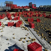 Camion si intraversa sulla Tangenziale: corsie invase da cassette e kiwi