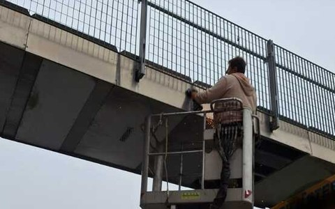La gru di un grosso autocarro danneggia passerella alla rotonda di Nichelino: traffico in tilt